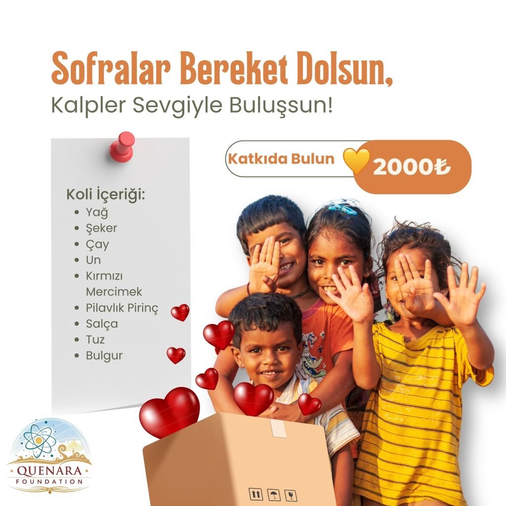 Komşusu açken tok yatan bizden değildir.” düsturuyla bu Ramazan, iyiliği sofralara taşıyoruz. Quenara olarak, katkılarınızla hazırlanan özenli ve besleyici Ramazan kolilerini, ihtiyaç sahibine hızlı ve onurlu biçimde ulaştırıyoruz. Her koli, bir ailenin yaklaşık bir ay temel gıda ihtiyacına destek olur. 🤲🤍
